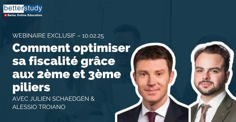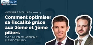 Découvrez les secrets du 2e et 3e pilier expliqués par deux experts, Julien Schaedgen, chef de succursale chez Swiss Life Select et conseiller breveté, et Alessio T., conseiller financier indépendant, à travers notre webinaire exclusif sur BetterStudy :